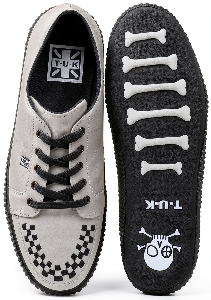 Le sneakers TUK Creeper presentano una silhouette casual ispirata allo stile classico, con dettagli intrecciati e una suola esterna a coste profonde per un look deciso e d’impatto. Realizzate in materiali di alta qualità come pelle o camoscio, queste calzature unisex per adulti sono progettate per l’uso quotidiano, offrendo durabilità e un design distintivo con il profilo a teschio e osso. Dotate di una soletta in memory foam per un comfort ottimale, le sneakers combinano estetica punk e funzionalità, con una suola robusta che assicura protezione e stabilità.